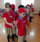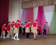 Ребята получили настрой на занятие приветствием, станцевав вместе со сказочными героями Мальвиной и Буратино танец друзей.